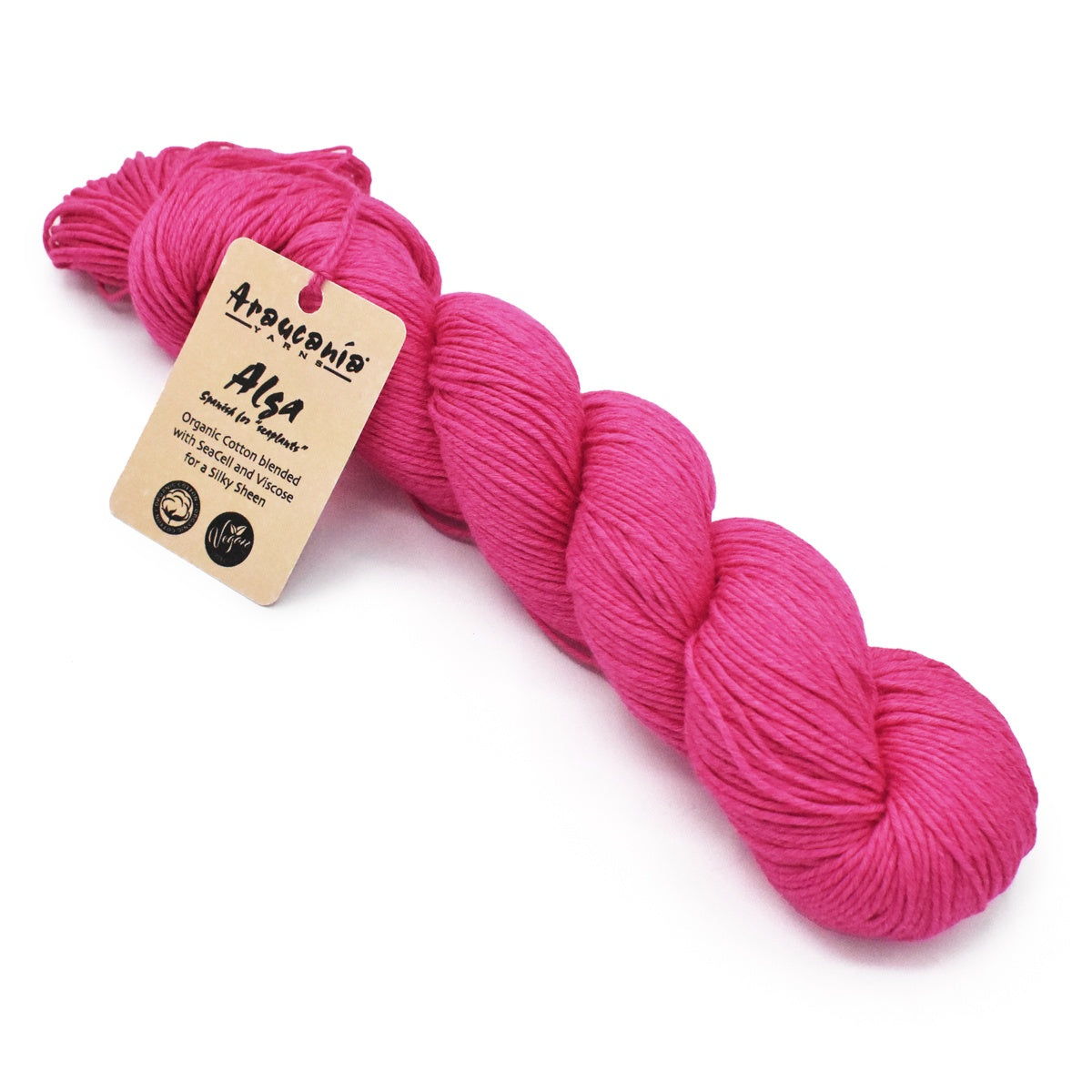 Alga (Spanish for “seaplants”) by Araucania Yarns. 65% organic cotton, 23% bamboo viscose, 12% SeaCell. DK/sport weight. 100gr/306 yds per skein. Gauge: 21 - 24 sts over 4"/10cm using needle size: 3.75mm - 4.5mm.